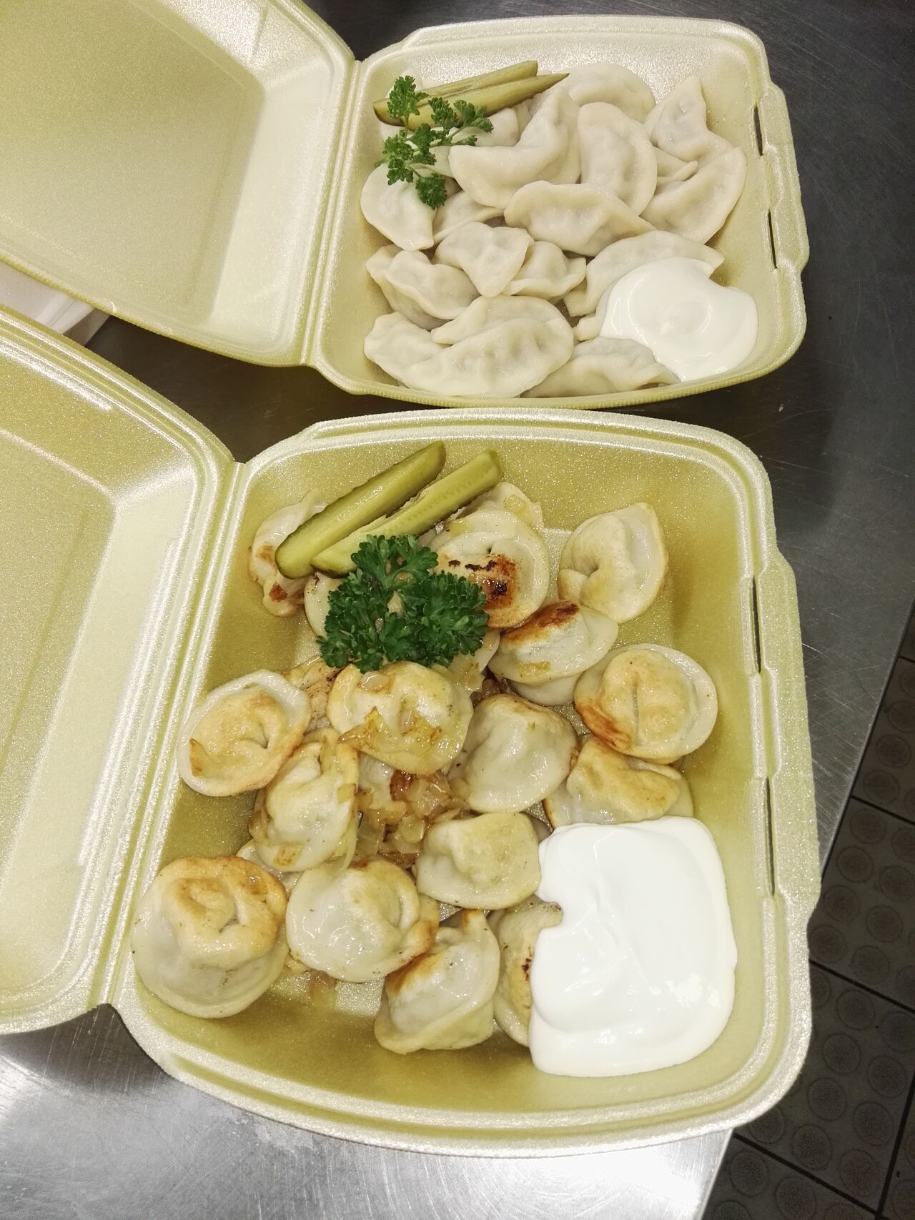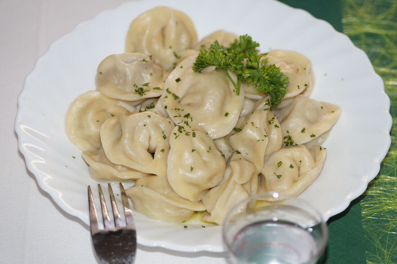 "Sibirische Pelmeni" sind ursprünglich aus Russland stammende, in Wasser oder Brühe gekochte & mit Fleisch gefüllte Teigtaschen.