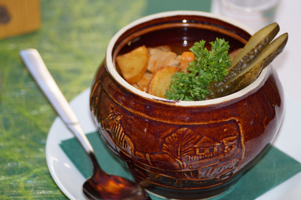 "Zharkoe“ Russischer Eintopf mit Kartoffel und Fleisch.